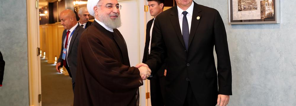 In a meeting with President Hassan Rouhani on the sidelines of the Caspian summit in Kazakhstan at the weekend, the Azeri leader said his country condemns the American sanctions against the Iranian people, Tasnim News Agency reported.
