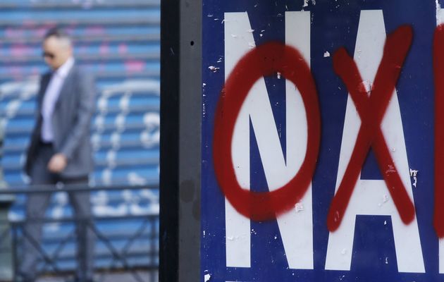 The "No" campaign has directed much of its venom at Germany, the euro zone's dominant power and Greece's biggest creditor. One poster plastered in central Greece shows a picture of German Finance Minister Wolfgang Schaeuble with the slogan: "For five years he's been sucking your blood. Tell him NO now."